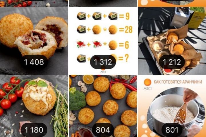 1. Создать контент, который не только бы продавал услуги клиента, но и знакомил аудиторию с продукцией, так как аранчини мало кому знакомое блюдо.