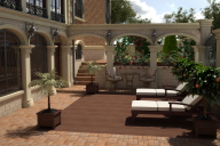 Задний дворик частного дома в испанском стиле