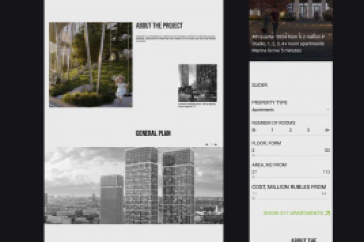 Разработка десктопной, планшетной и мобильной версий сайта в фигме. Результатом проекта является готовый дизайн-макет сайта недвижимости, который станет удобным, функциональным и привлекательным для пользователей. По макету разработчики смогут сверстать сайт на основе дизайн-макетов.