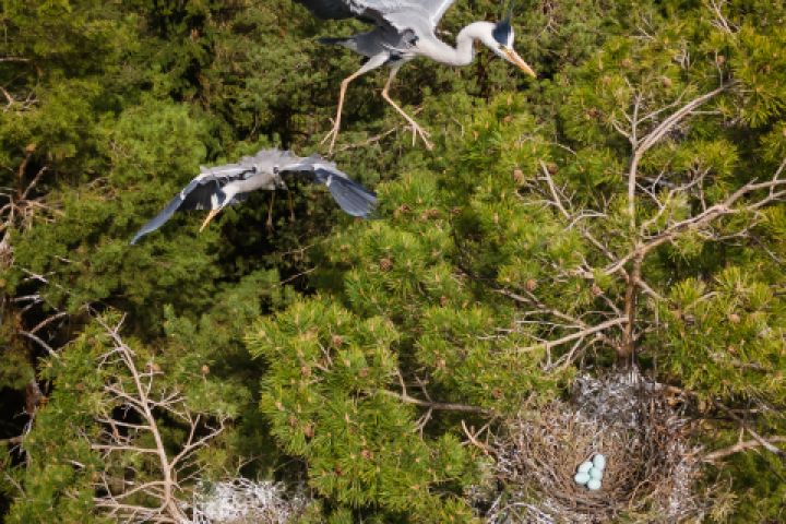 В нашем городском парке давно гнездятся серые цапли. Там у них целый город, десятки гнезд. Вот я и слетал к ним в гости.