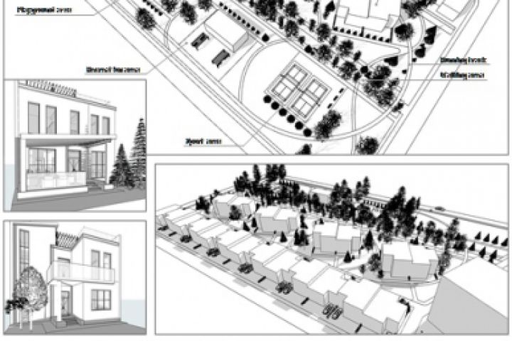 Фрагмент участка поселка с размещением блокируемых домов. Основная задача разместить оптимальное количество жилого фонда с максимальным сохранением исходного благоустройства и посадок деревьев.В зоне сохраняемого ландшафта устраивается спортивная и досуговая инфраструктура.