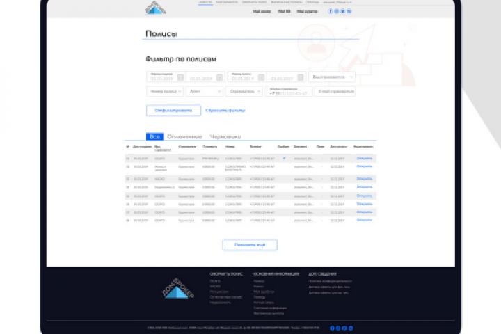 Сервис помогает выписать страховой полис без проволочек и максимально автоматизированно. Агент видит предложения страховых продуктов, выбирает подходящие условия и заключают сделку. Также, в данном интерфейсе можно удобно управлять своим заработком.