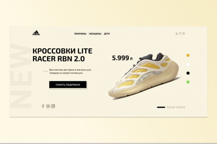 Стильный дизайн первый экран, для магазина спортивной обуви и одежды adidas