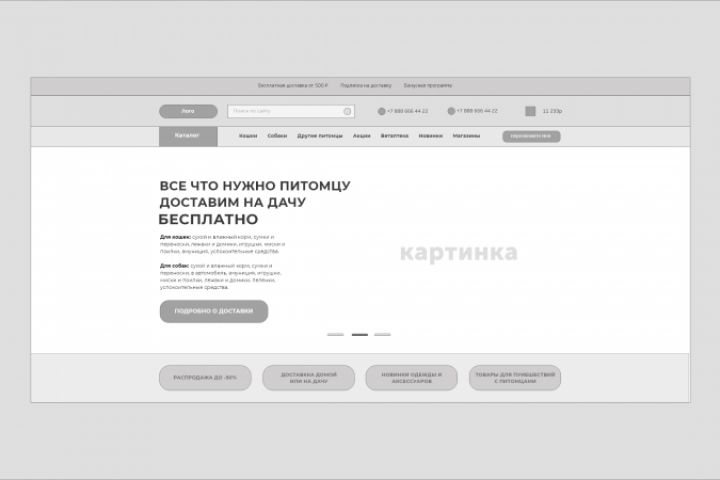 Прототип сайта интернет-магазина все для животных. Также создана страничка для товара.