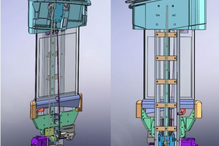 Механизм подъема планшета с наклоном при подьеме и возможностью зарядки. Монтировался в борт микроавтобуса.