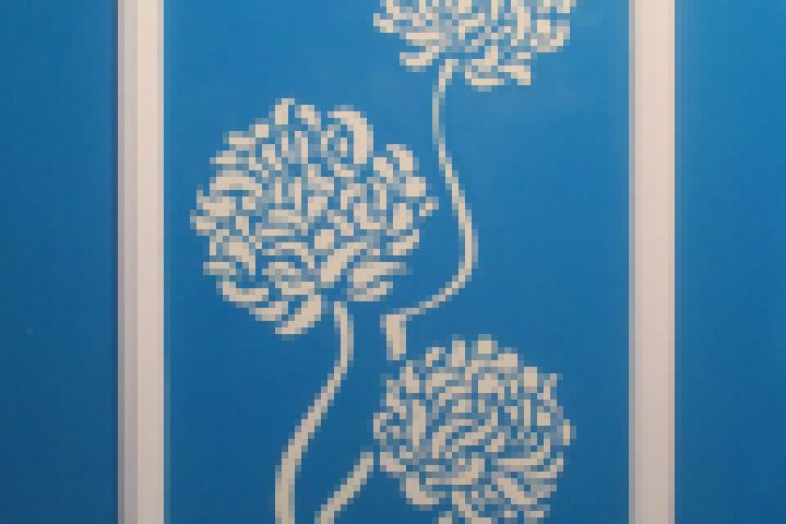 Для оформления туалетной комнаты были расписаны стены огромными цветами. На левой и правой стене были созданы картины.