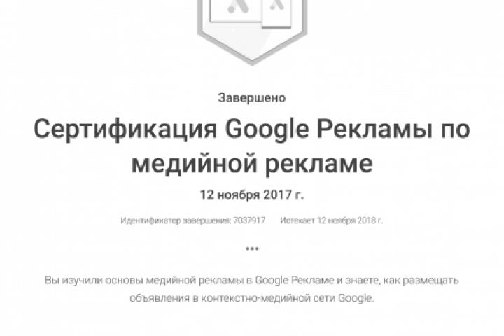 Сертификат по медийной рекламе в Google Ads действителен до 12.11.2018