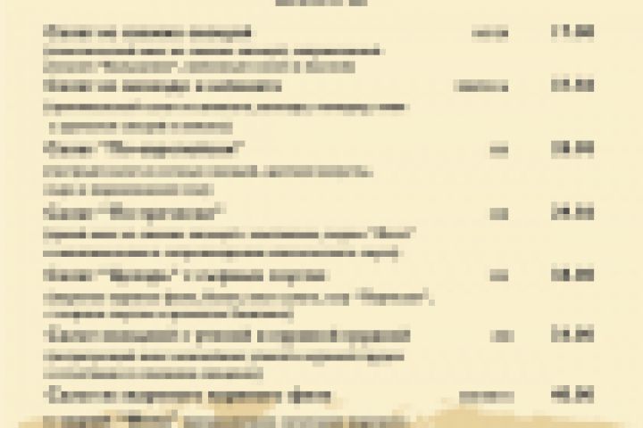 Меню ресторана "Панорама"