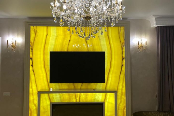 Реализация. Гостиная в загородном доме. Портал из оникса для зоны TV