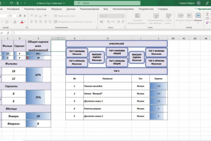 По нажатию на кнопку макроса выводит TOP-5 значений по желаемому критерию