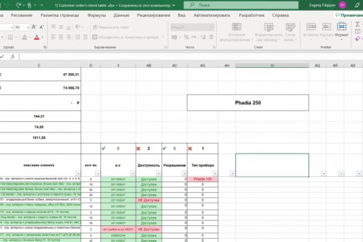 Проверка заказа клиента