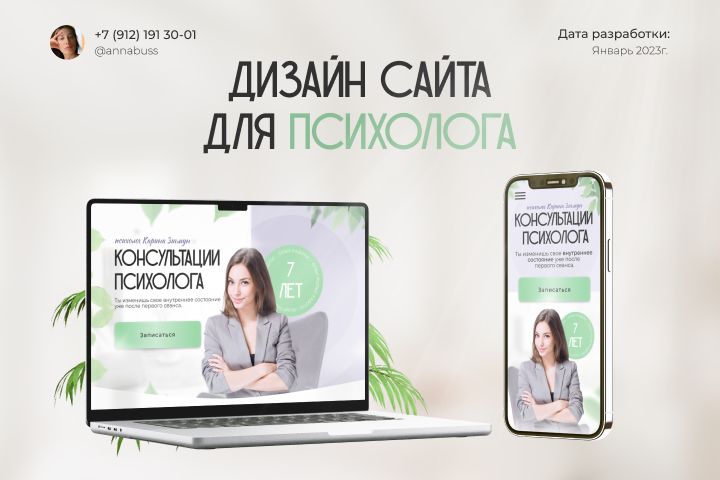 Клиентка попросила сайт с фиолетовым и зеленым цветами, также ей хотелось видеть растения, которые добавляют комфорт. В проекте учтены пожелания с цветами, а также растения, которые добавлены в равномерной пропорции, чтобы сохранить понимание, что сайт для психолога.