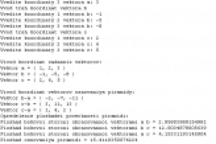1. Определить отношение площади поверхности пирамиды, построенной на трех заданных векторах к его объему;
