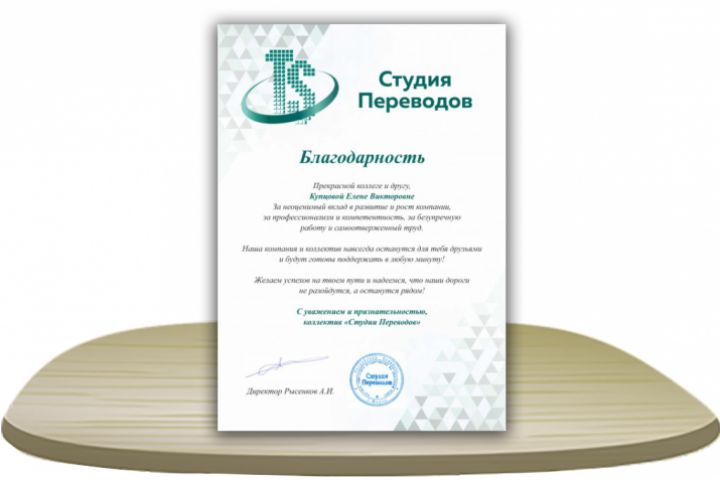 Благодарственное Письмо