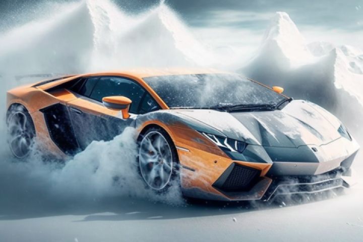 ламборгини едущая по снежной дороге