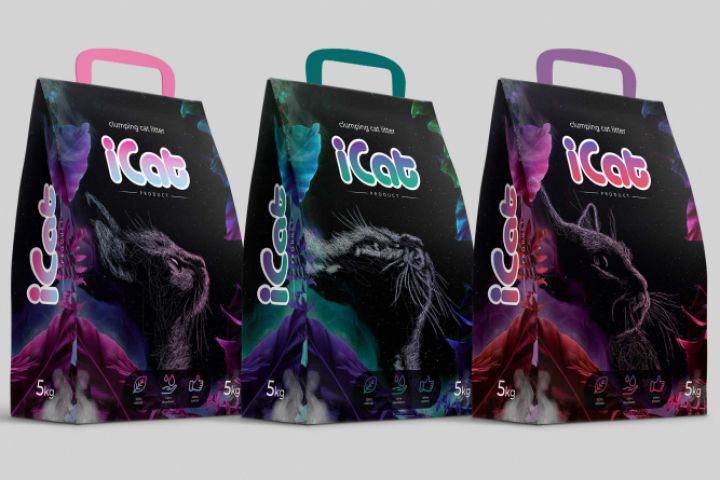 Макет упаковки упаковки кошачьего наполнителя iCat