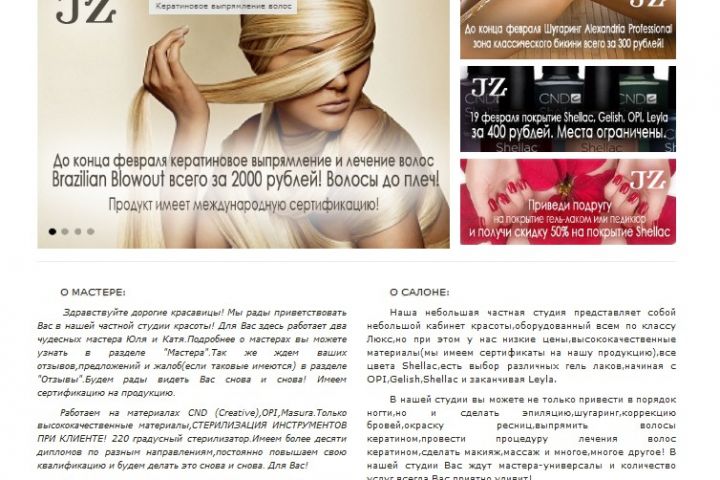 Сайт с услугами красоты. Частный мастер. Построен на MODx Revolution.