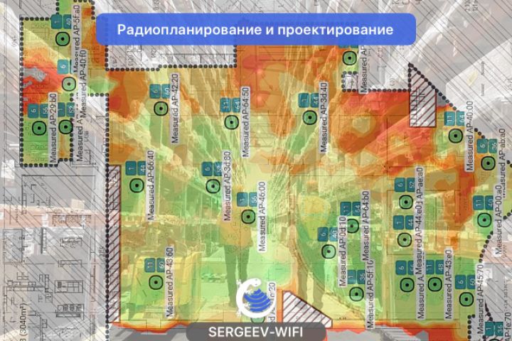 Радиопланирование - программное моделирование сетей Wi-Fi в специальном ПО (Ekahau AI Pro v11). На основе планов здания подготавливается модель работы сети с учётом модели точек доступа, её настроек, высоты и угла установки, радиоканалов, поглощения сигнала стенами, требований заказчика и типом клиентского устройства. Моделирование позволяет спрогнозировать уровень сигнала, скорость доступа в сеть, загруженность радиоэфира, уровень шума, интерференцию внутри радиоканала, соотношение сигнала к шуму и возможность быстрого роуминга между точками доступа. Результатом работы станет подробный отчёт, на основе которого проводится радиоразведка или строится беспроводная сеть. На этом этапе можно дешево избежать будущих проблем и не совершить ошибки. При использовании Ekahau Pro и высокой квалификации инженера можно добиться точности до 85%.
