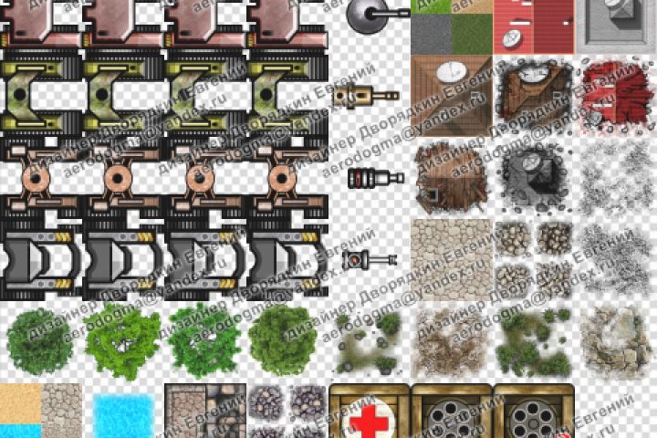 Атлас текстур и анимированных игровых элементов для игры "РоБоты".