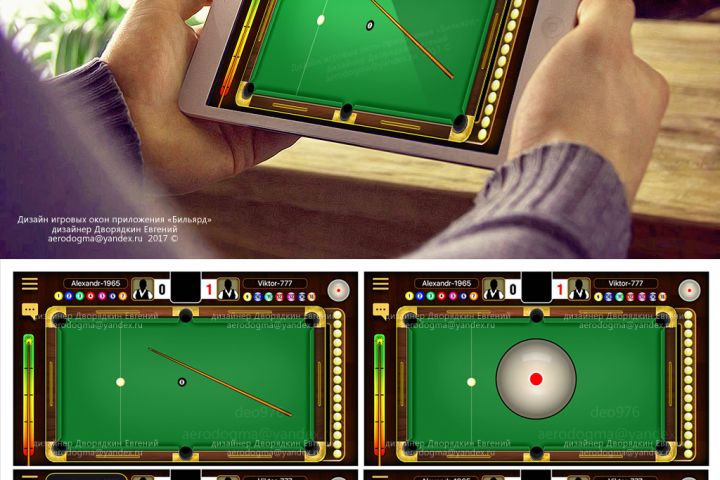 дизайн интерфейса и игровых окон игры "Бильярд"