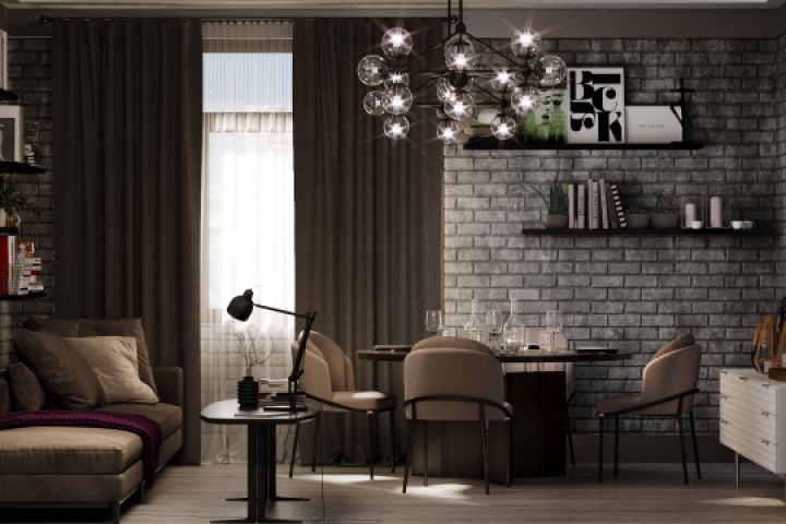 Визуализация интерьера выполняется в 3ds max + Corona render c последующей постобработкой в Photoshop