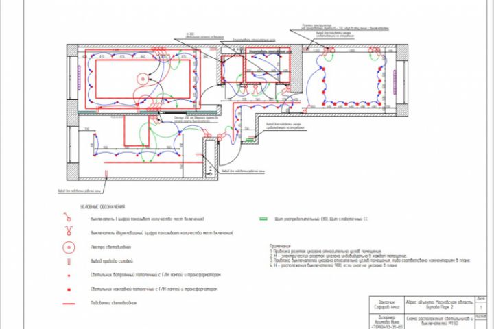 - Схема расположения светильников и выключателей