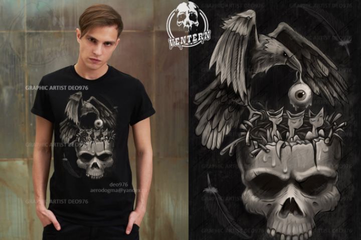 принт ворон кормит птенцов / @deo976