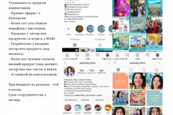 ведение сторис, работа с блогерами, таргетированная реклама, создание