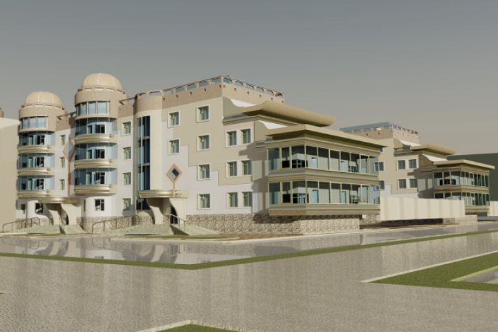 В проекте предусмотрено секционное и террасированное жилье. Хорошо инсолируемые террасы открыты на главную улицу Радищева. Во избежание попадания посторонних предметов и нежелательных взглядов с верхних террас на нижние предусмотрены специальные защитные тенты и озеленение. На первом этаже расположены архитектурная и художественная мастерские, а также квартира для маломобильных групп населения.