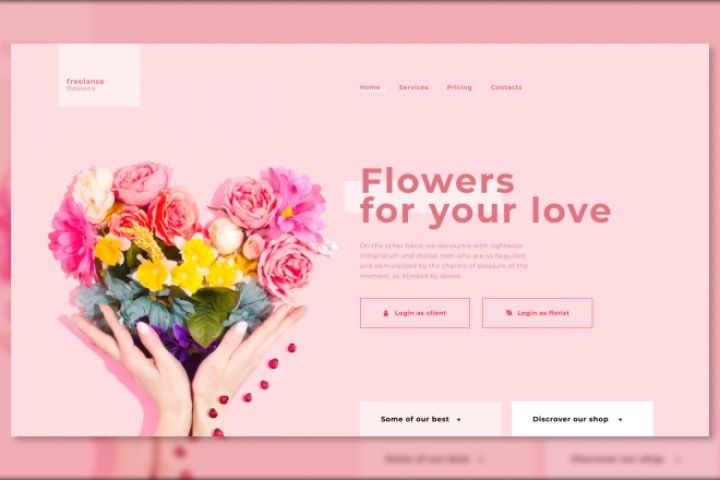 Представлен первый экран сайта, который специализируется по найму флористов и поиску работы.