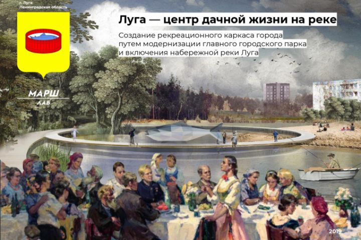 Проект благоустройства города Луга разработан в рамках воркшопа МАРШлаб. Концепция выиграла конкурс и получила финансирование.