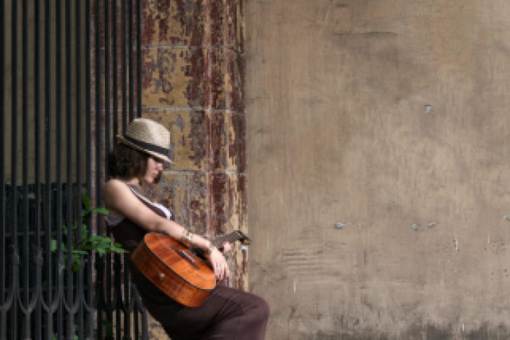 Постановочная съёмка на улице с естественным светом.