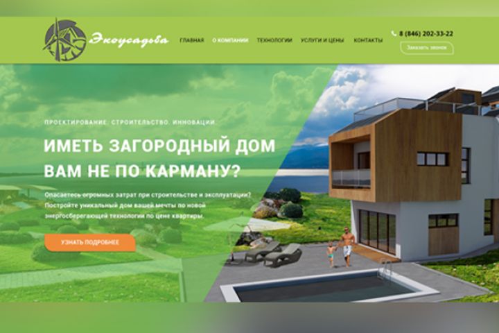 Разработка сайта для "Экоусадьба" CMS: WordPress. Удобное управление из админ-панели. Дизайн: Flat-стилистика Верстка: адаптивная, отзывчивая, кросс-браузерная, кросс-платформенная. Технологии: HTML5, CSS3, PHP, Javascript, jQuery, Parallax