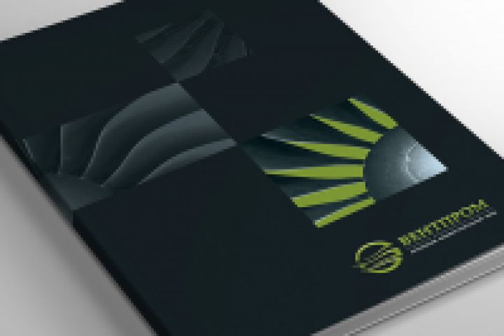 Концепт книжки для ОАО Артёмовский машиностроительный завод «ВЕНТПРОМ» Обложка - дизайнерский картон + вырубка, титульные листы - калька, печать серебром.