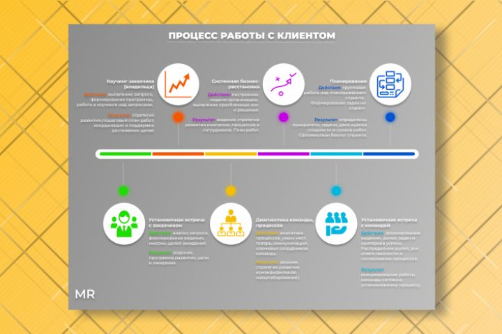 Схема инфографика общения с клиентом, разработанная в FIGMA.