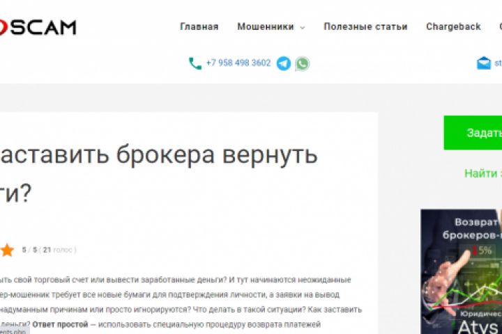 Stop-scam – уникальный проект, который занимается разоблачением мошеннических схем и способов обмана пользователей на финансовых рынках. Наша команда специализируется на анализе деятельности брокерских компаний, дилинговых центров, онлайн-казино, юридических организаций, финансовых пирамид, которые предлагают новичкам легкие способы заработка и «быстрые» деньги.
