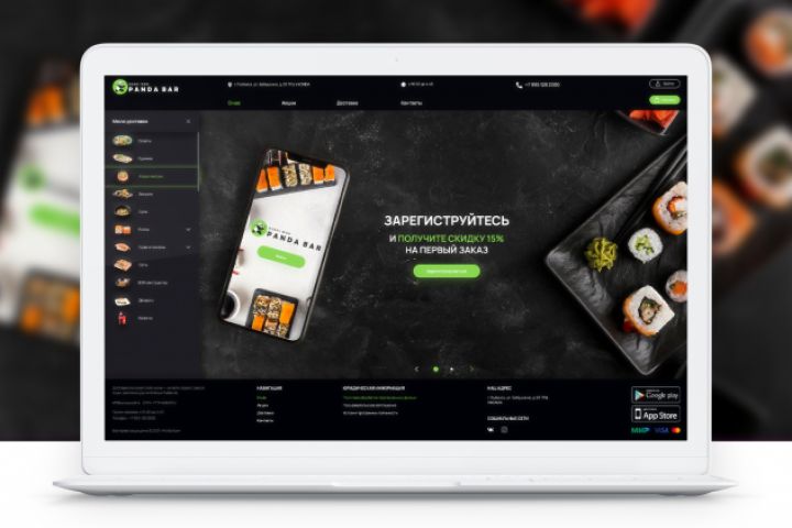 Задача: Необходимо спроектировать дизайн сайта по доставке панзиатской еды "Panda Bar".