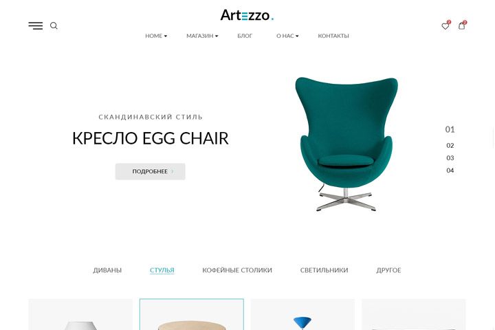 Нейминг с подбором домена, разработка минималистичного стильного дизайна интернет-магазина дизайнерской мебели