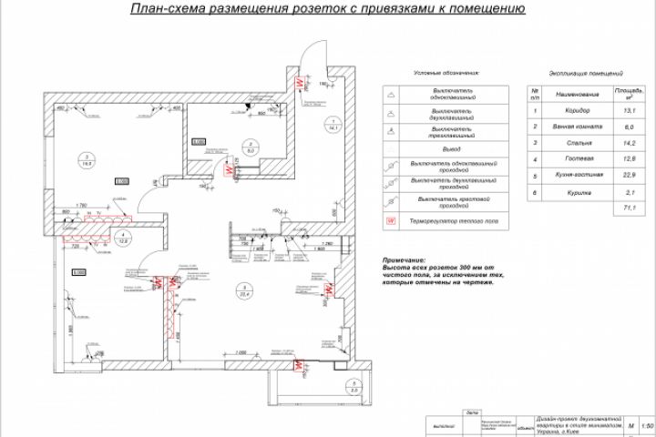Рабочий проект двухкомнатной квартиры, г.Киев