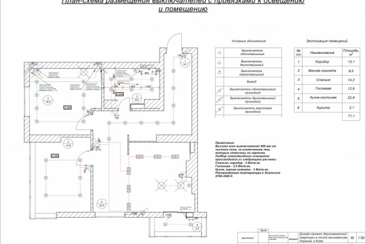 Рабочий проект двухкомнатной квартиры, г.Киев