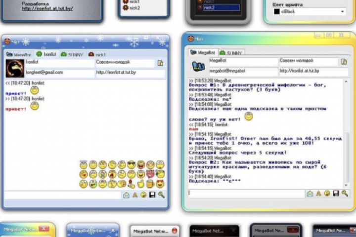 Программа состоит из серверной и клиентской части, обеспечивает передачу текстовых сообщений между пользователями и поддерживает: общий пользовательский чат и передачу сообщений друг другу (в том числе передачу сообщений в оффлайн с возможностью отложенной доставки), авторизацию пользователя по логину/паролю, графические смайлы, цветной текст разных размеров и шрифтов, сворачивание в трей, скины.