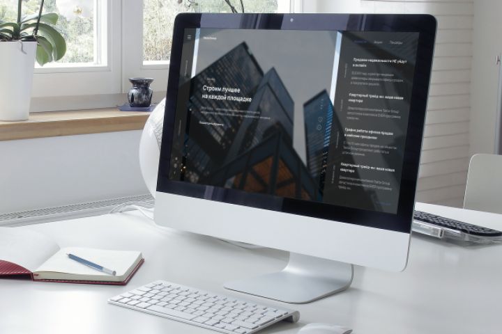 В дизайне хотелось показать фундаментальность и надежность компании, ее непрерывную деятельность в своей сфере, уникальность строительных проектов.