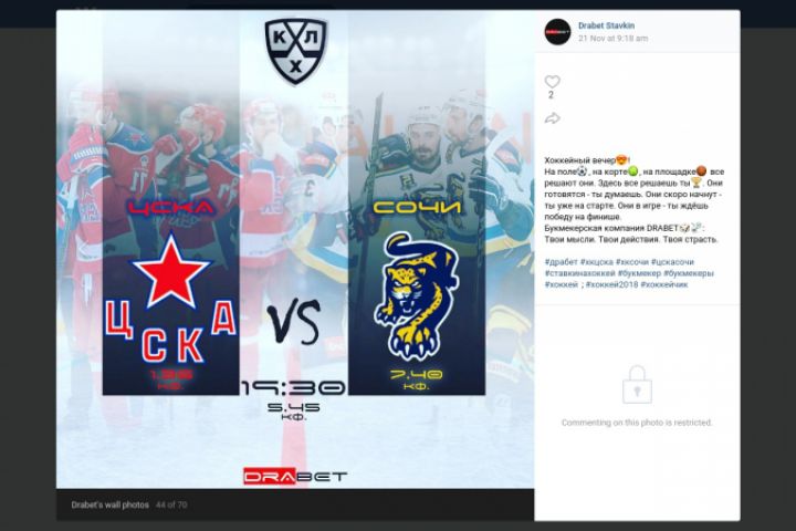 На поле, на корте, на площадке все решают они. Здесь все решаешь ты. Они готовятся – ты думаешь. Они скоро начнут – ты уже на старте. Они в игре – ты ждешь победу на финише. Букмекерская компания «DRABET»: Твои мысли. Твои действия. Твоя страсть.