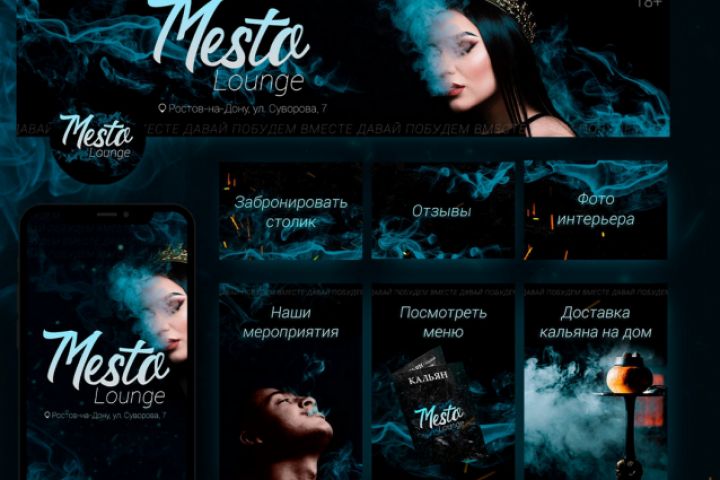 Оформление группы Вконтакте для тематики "Кальянная" . А также проработка уникального дизайна для бизнеса.