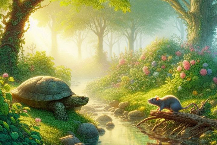 В тихом уголке сада Черепаха медленно ползла к ручью. Её панцирь отражал свет утреннего солнца, а мысли были ясными и спокойными. Она была последовательницей пути дзен, стараясь жить в согласии с миром.