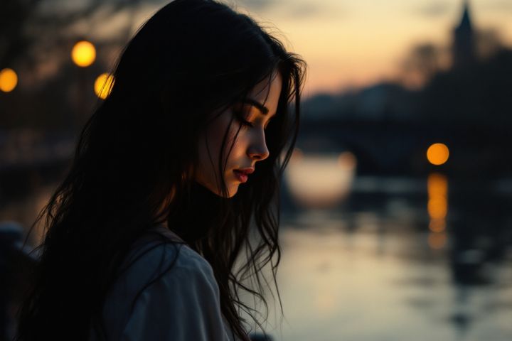 Вечерняя прохлада окутывала город, когда Аня стояла на мосту, глядя на медленно текущую реку. В её глазах отражались огни фонарей, и казалось, что в них плещется целый мир эмоций. Город сверкал, как всегда, только теперь в этих огнях не было его улыбки.