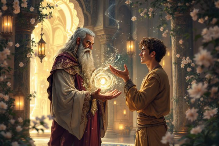 В великом городе Багдаде жил мудрый визирь по имени Джафар. Его ум был острее меча, а сердце — мягче шелка. Джафар был известен не только своей мудростью, но и невероятным мастерством в магии. Однажды к Джафару явился молодой принц Али, сын могущественного шаха. Лицо принца было омрачено печалью, а глаза горели огнем любви. Он поклонился визирю и сказал: