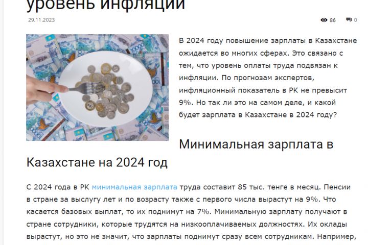 новость: Зарплата в Казахстане 2024 года и уровень инфляции