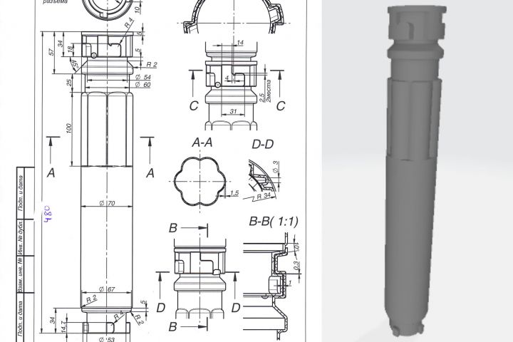 По чертежу заказчика разработаны несколько 3D моделей под различные итоговые размеры.