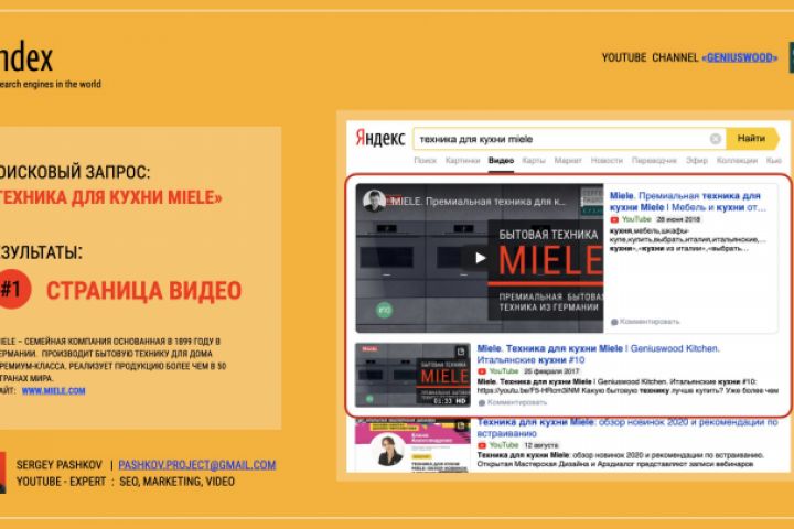 Умею и продвигаю видео на первые страницы поисковых систем – на страницу №1 Google, на страницу №1 YouTube и на страницу №1 Яндекса (подтвержденные кейсы смотрите в моем портфолио)